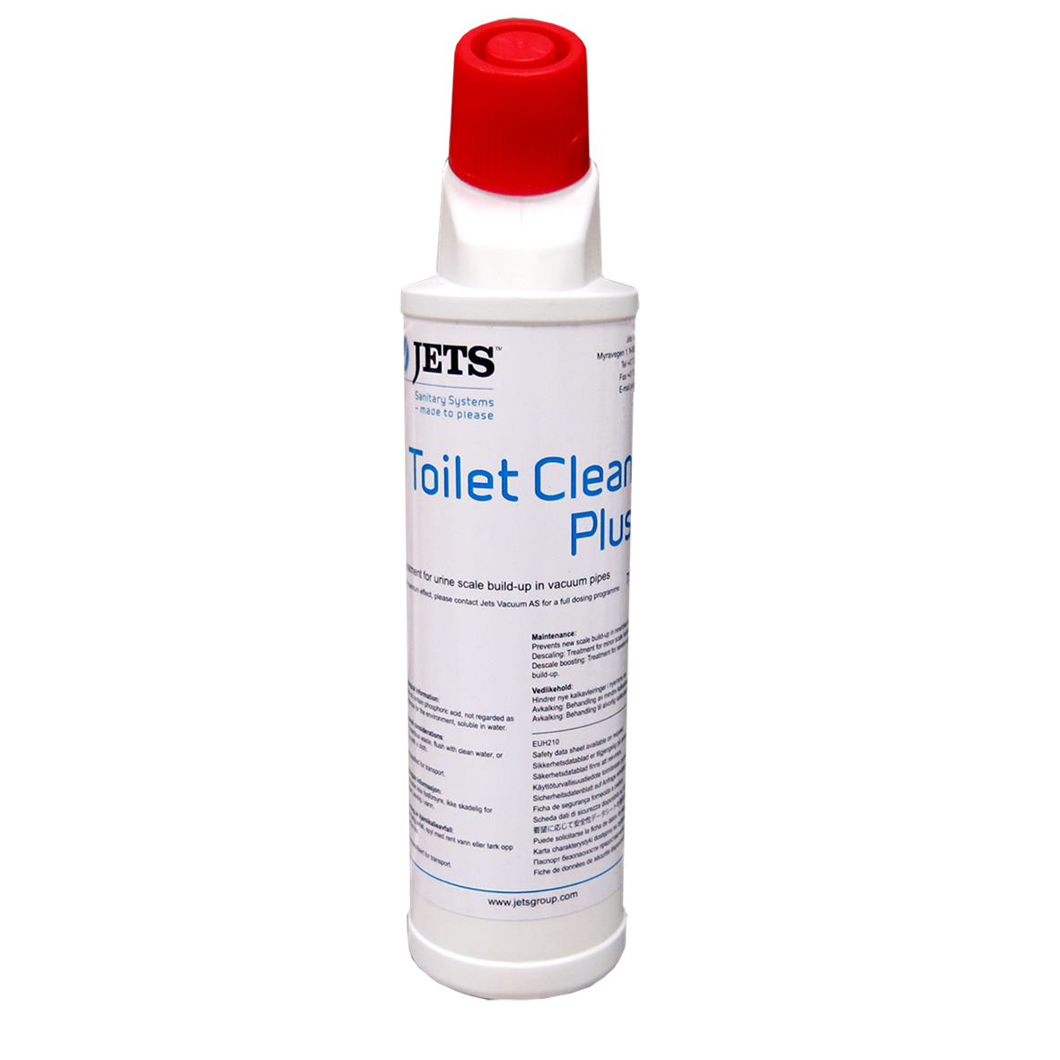 Jets™ Toilet Clean er laget for å forhindre oppbygning av urinstein og annet belegg i vakuumrørene og fjerne eventuelle problemlag som nylig er begynt å dannes.